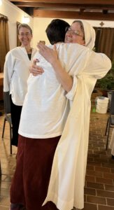 The monastery is a schola caritatis, a school of love because only Christ’s love can transform us, the love who is the Holy Spirit within us. He has led us to the desert to speak tenderly to our hearts (Hosea 2:14), and in the desert of self-knowledge and mutual service, we have learned that we can’t live the Christian life unless we lean on Christ. This is how holiness looks according to St Bernard and is expressed in the words of the Song of Songs, Who is this coming up from the wilderness, rich in grace and beauty, leaning upon her beloved? (Song 8: 5, SC 85). God is not asking us to be perfect but to depend on him in love; this is our joy and hope. When God loves, he desires nothing but to be loved, since he loves us for no other reason than to be loved, for he knows that those who love him are blessed in their very love (SC 83: 4), says St Bernard. And he continues, He asks nothing else, and she has nothing else to give. That is why he is the bridegroom and she the bride” (SC 83:5).